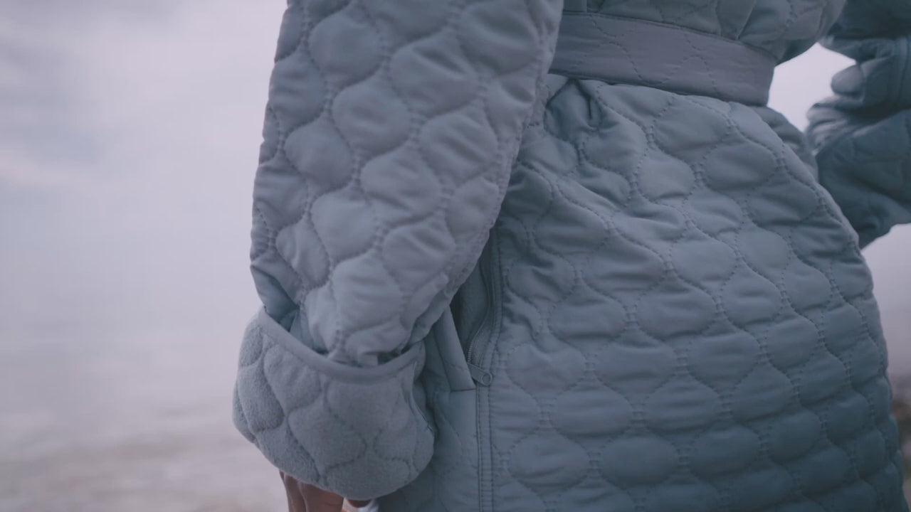 Alle NORDBAEKs vinterbadekåber med frotté på indersiden er lavet af 100% oeko-tex og genanvendt polyester thermo-quilt på ydersiden, fordi vi gerne vil passe på dig og vores fælles jord. Når du bærer din NORDBAEK termokåbe ved du, at dit produkt er lavet med fokus på ansvarlig produktion.